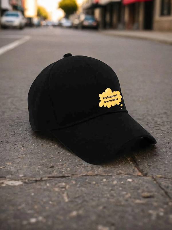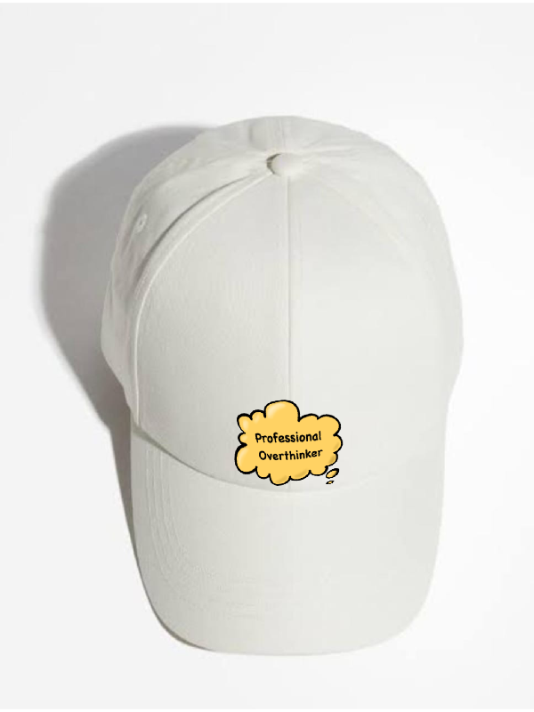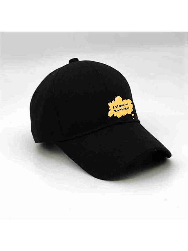 Introducing the "MindMinder Cap" – a revolutionary accessory designed for the professional overthinker. Crafted with thoughtfulness in mind, this cap features a discreet pocket to hold your extra ideas, a mental note section for spontaneous thoughts, and a calming color palette to soothe your racing thoughts. Elevate your overthinking game with the MindMinder Cap – because every idea deserves a stylish home.